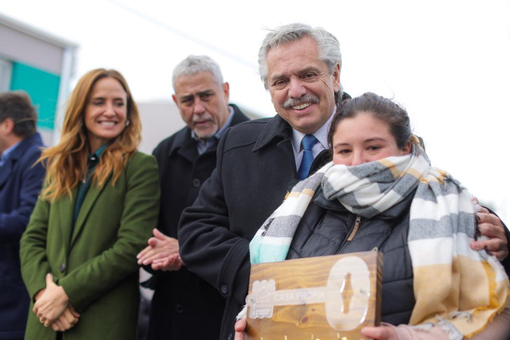 El presidente Alberto Fernández encabezó esta mañana, en el partido bonaerense de Ensenada, la entrega de 224 viviendas realizadas en el marco del Programa Reconstruir a través de una inversión del Gobierno nacional de más de 421 millones de pesos.