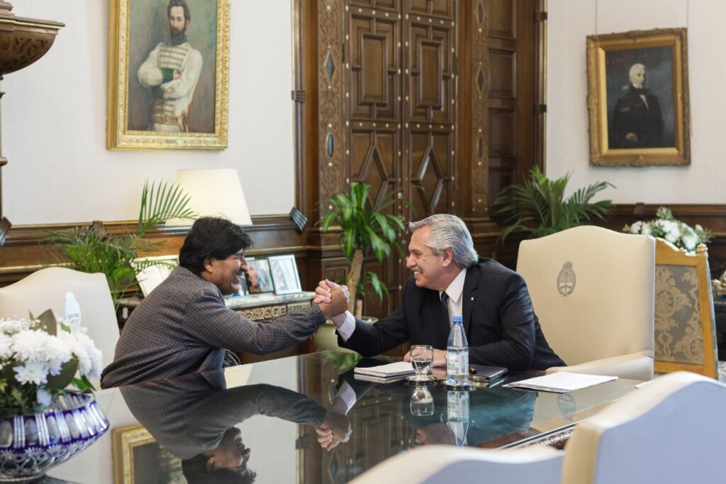 El presidente Alberto Fernández mantuvo hoy un almuerzo de trabajo en Casa Rosada con el ex mandatario de Bolivia, Evo Morales, en el marco del Día de la Confraternidad Argentino Boliviana, en conmemoración del nacimiento de la generala Juana Azurduy.
