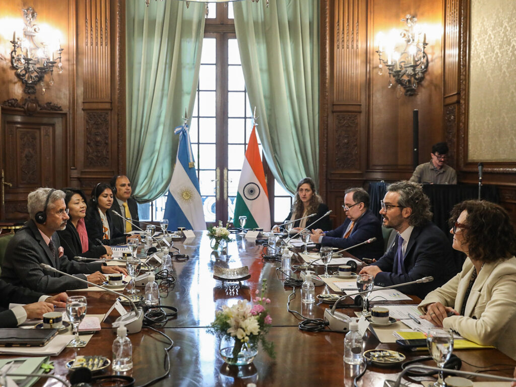 El canciller Santiago Cafiero recibió hoy en el Palacio San Martín al ministro de Asuntos Exteriores de la India, Subrahmanyan Jaishankar, con quien mantuvo una audiencia privada y luego una reunión de trabajo, junto a las respectivas delegaciones, con el objetivo de seguir fortaleciendo la cooperación bilateral e incrementar el intercambio comercial y las inversiones.