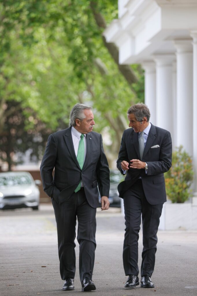 El presidente Alberto Fernández recibió en la Residencia de Olivos, junto al ministro de Relaciones Exteriores, Comercio Internacional y Culto, Santiago Cafiero, al director general del Organismo Internacional de Energía Atómica (OIEA), Rafael Grossi.