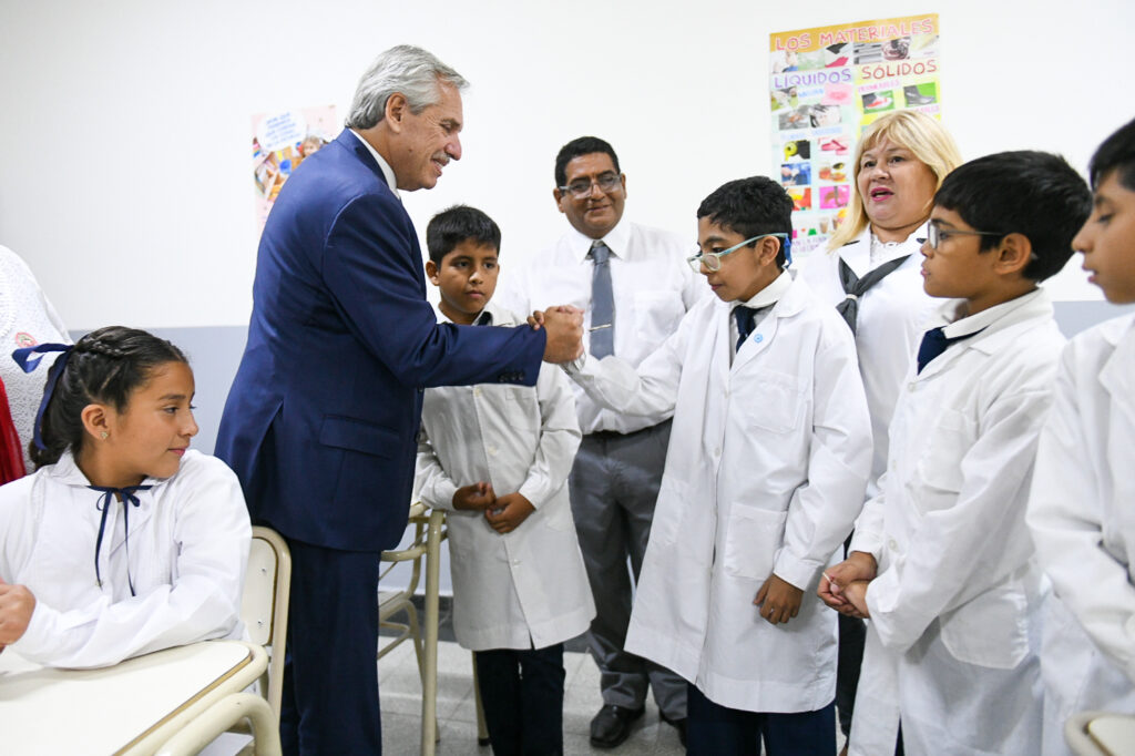 El presidente Alberto Fernández inauguró hoy las obras de ampliación y puesta en valor de la Escuela Centenario, en la capital de Santiago del Estero, que tuvo una inversión de 267 millones de pesos del Gobierno Nacional y beneficiará a 1.600 estudiantes.