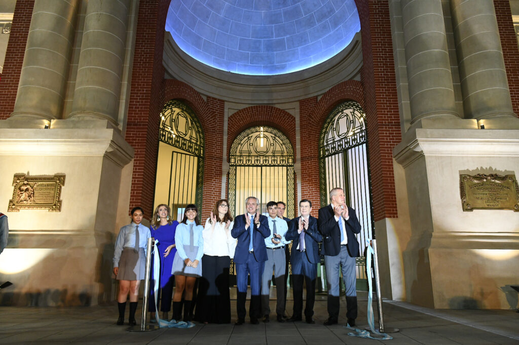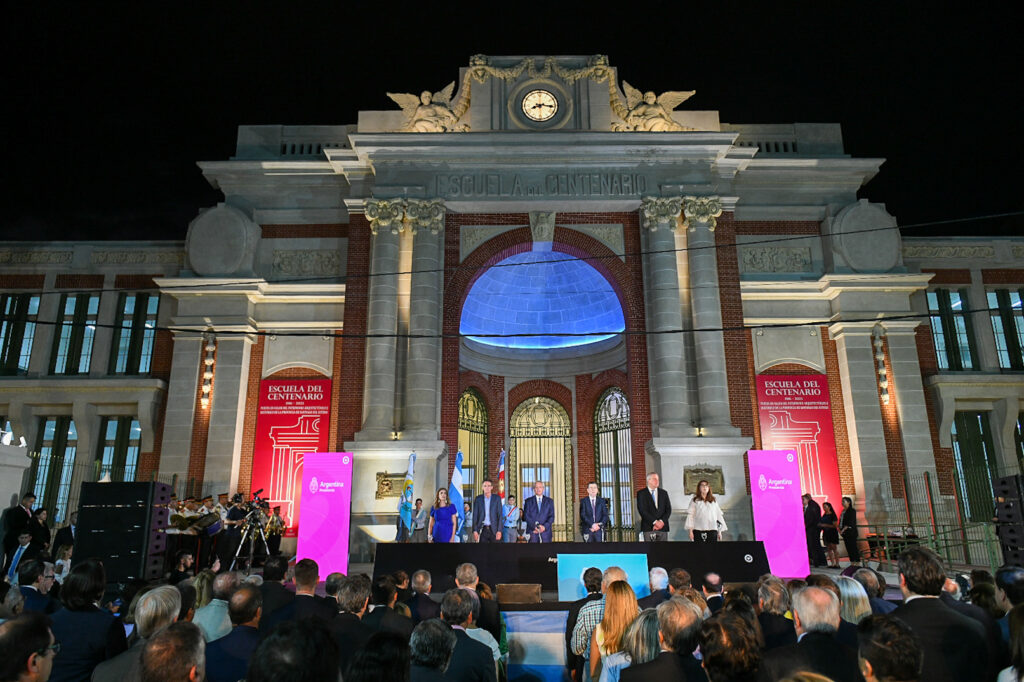 Previo al corte de cinta y al descubrimiento de la placa inaugural, el mandatario recorrió algunos de los nuevos espacios de la institución y compartió un encuentro con egresadas y egresados, acompañado por la presidenta Previsional del Senado de la Nación, Claudia Ledesma Abdala; los ministros de Obras Públicas, Gabriel Katopodis, y de Educación, Jaime Perczyk; y la rectora de la Escuela Centenario, María Nelba Alberto.