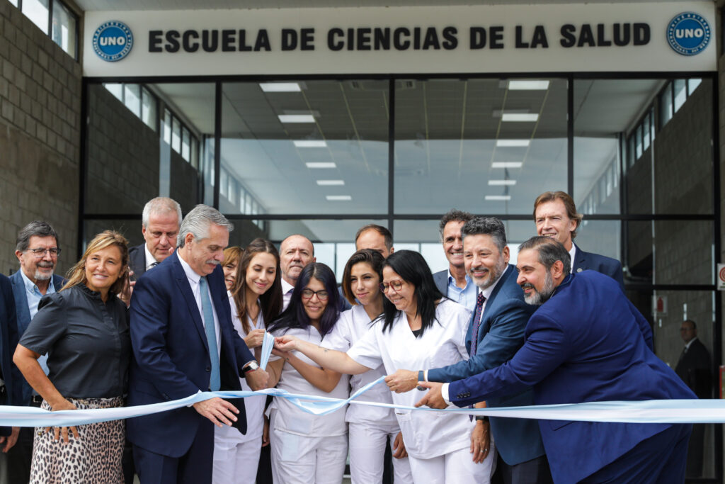 El presidente Alberto Fernández inauguró este mediodía el edificio de la Escuela de Ciencias de la Salud, el primero que entrará en funcionamiento en el nuevo campus de la Universidad Nacional del Oeste (UNO), en el municipio bonaerense de Merlo, y que beneficiará a 6.500 estudiantes de la Licenciatura en Enfermería.