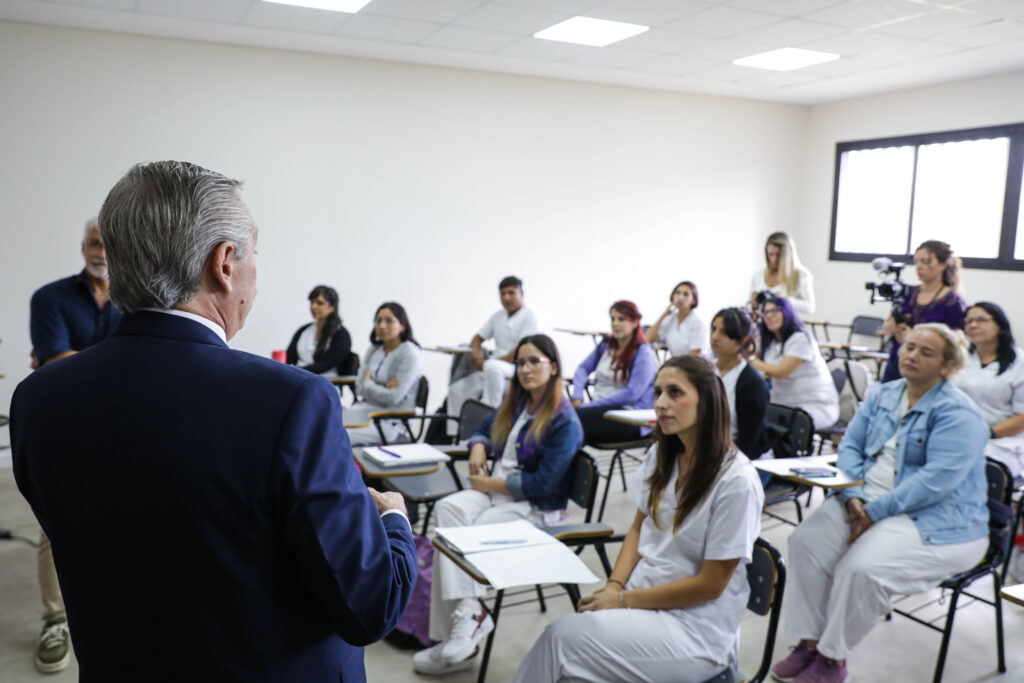 “Vamos a estar eternamente agradecidos por el esfuerzo que hicieron los profesionales de la salud durante esa epopeya”, expresó el mandatario y puso en valor que con la inauguración del nuevo edificio donde realizarán su formación 6.500 estudiantes de la Licenciatura en Enfermería “vamos a tener gente mejor preparada, mejor calificada y más reconocida”.