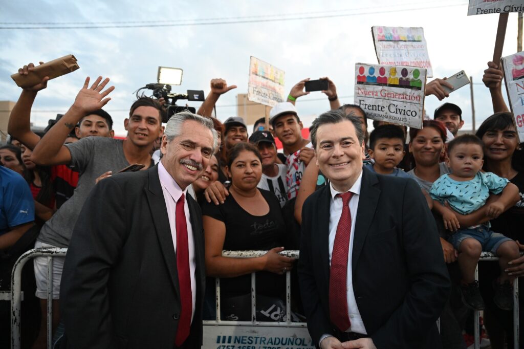 El mandatario estuvo también acompañado por los ministros de Desarrollo Territorial y Hábitat, Santiago Maggiotti; y de Cultura, Tristán Bauer; el ministro provincial de Obras, Servicios Públicos y del Agua, René Hid; y la secretaria de Hábitat, Micaela Villaverde.