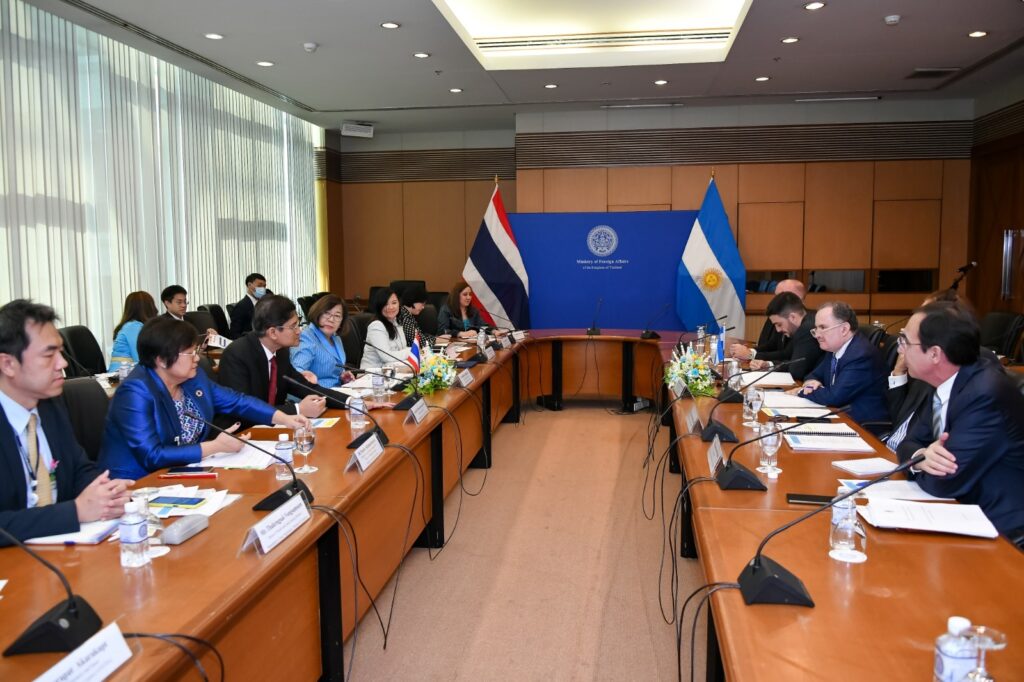 Ambas delegaciones repasaron los principales indicadores de las economías argentina y tailandesa, las proyecciones en ambos países para 2023, así como también el estado del comercio bilateral y los principales productos comerciados.