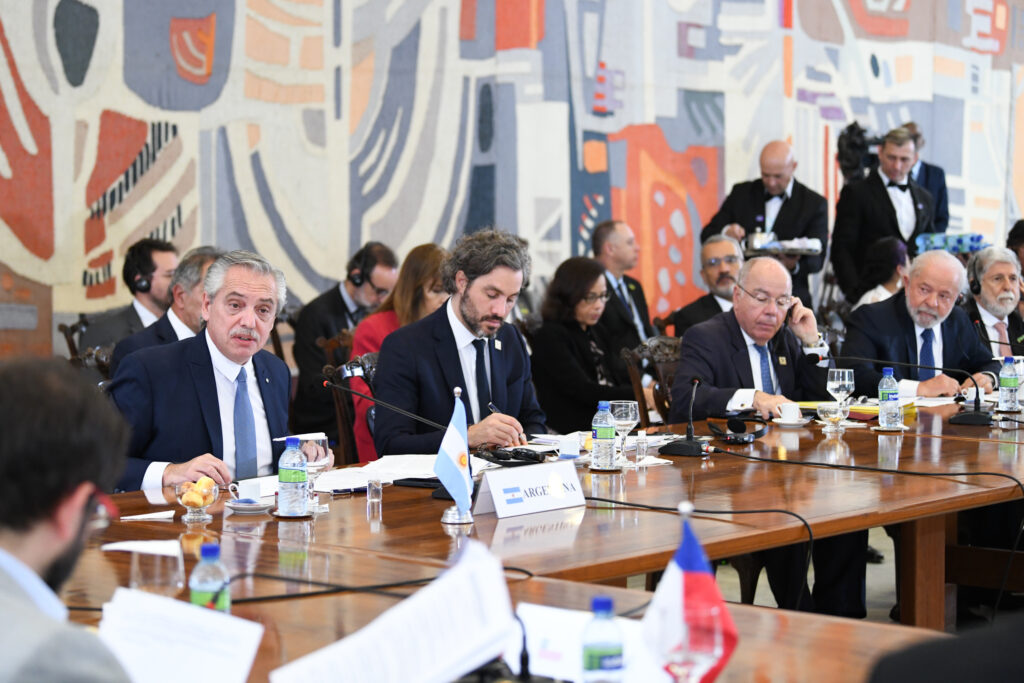 El presidente Alberto Fernández participó hoy en el Palacio Itamaraty, en Brasilia, de la primera Sesión de Trabajo del Encuentro de Presidentes de los países de América del Sur convocado por su par de Brasil, Luiz Inácio “Lula” Da Silva.
