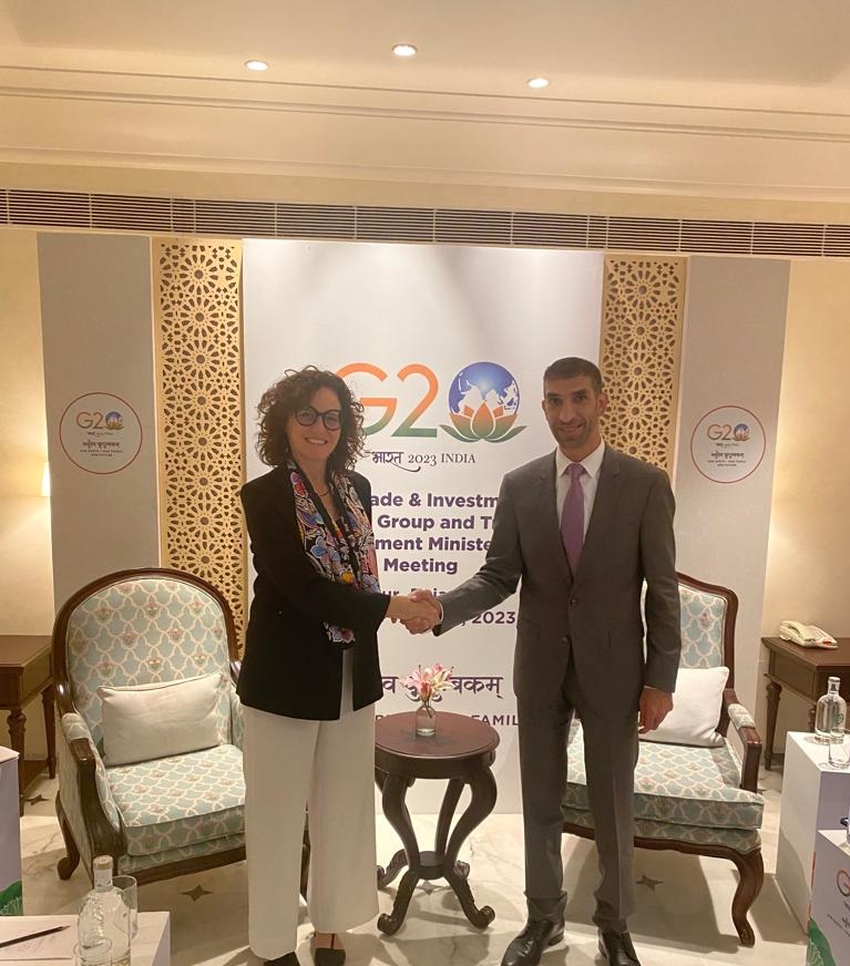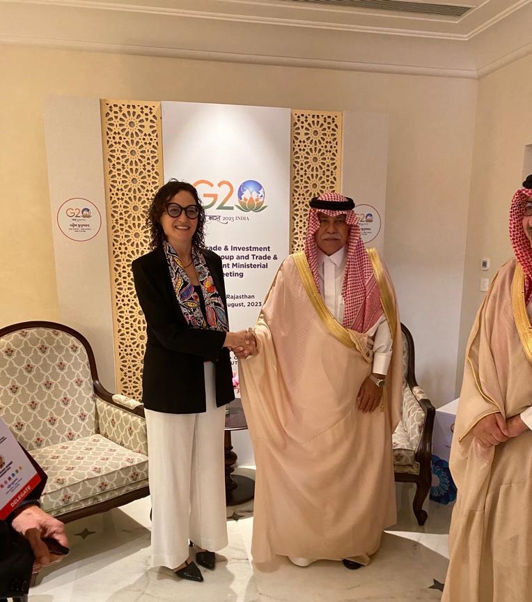 En los márgenes de la Reunión ministerial en Jaipur, y dando continuidad a una agenda de reuniones que comenzó ayer con Alemania y Francia, la secretaria Todesca Bocco mantuvo hoy encuentros bilaterales con sus pares de Arabia Saudita, Emiratos Árabes Unidos, la Unión Europea y Suiza.
