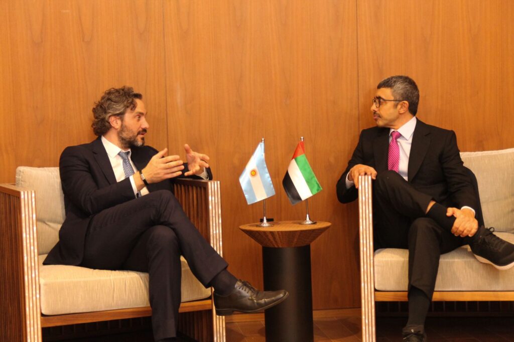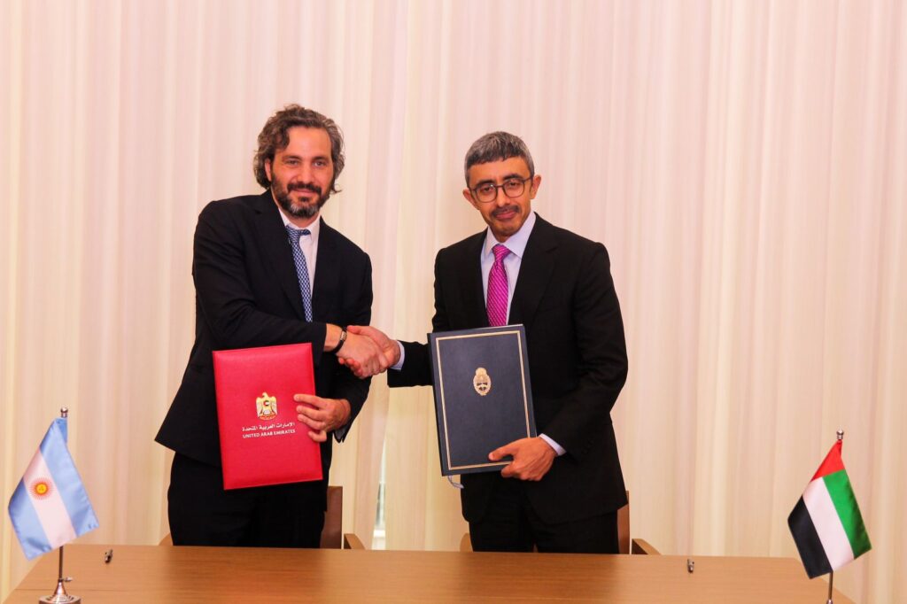 En el marco del 78º período de sesiones de la Asamblea General de las Naciones Unidas que comienza el martes 19 en Nueva York, el canciller Santiago Cafiero mantuvo este domingo un encuentro con el Ministro de Asuntos Exteriores de los Emiratos Árabes Unidos, Jeque Abdullah bin Zayed Al Nahyan, con quien acordó una visita técnica para promover inversiones emiratíes en Minería, Energías Renovables e infraestructura para aumentar la oferta exportable de nuestro país.