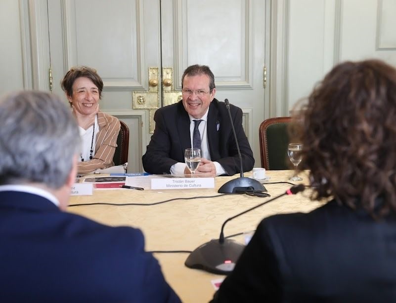 El ministro de Cultura de la Nación, Tristán Bauer, y la secretaria de Relaciones Económicas Internacionales de la Cancillería, Cecilia Todesca Bocco, presidieron hoy en el Palacio San Martín una reunión de trabajo sobre el Plan de Promoción ExportArte, con el objetivo de profundizar los aspectos innovadores de esta iniciativa y dar a conocer el Catálogo Digital de Galerías de Arte.