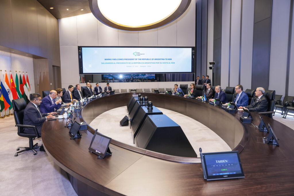 Durante la reunión, el Presidente entregó una carta formal a la titular del nuevo Banco de Desarrollo (NDB), que es el primer paso para cumplir con el proceso de incorporación, como ya sucedió con la pertenencia al Grupo Banco Mundial, el Banco Interamericano de Desarrollo (BID), el Banco de Desarrollo de América Latina y el Caribe (CAF), el Banco Africano de Desarrollo, y recientemente con el Banco Asiático de Inversión en Infraestructura.