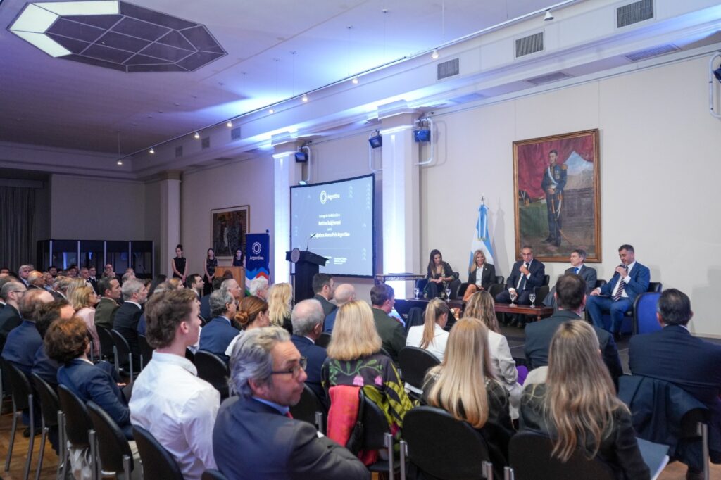 El jueves 14 de marzo se celebró en el Palacio San Martín un acto de visibilización de la Marca País Argentina (MPA), en el marco de la designación de Bettina Bulgheroni como Embajadora de la Marca, distinción que se le otorgara en virtud de su trayectoria empresarial, contribución y dedicación a la inclusión social de comunidades con bajos recursos.