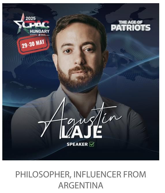 Sotelo viajó a Budapest especialmente invitado a participar de la cumbre de la CPAC que lleva el slogan “La era de los patriotas”. Este viernes participará en el evento otro alfil de Milei: Agustín Laje, presentado como “influencer” y “filósofo”.